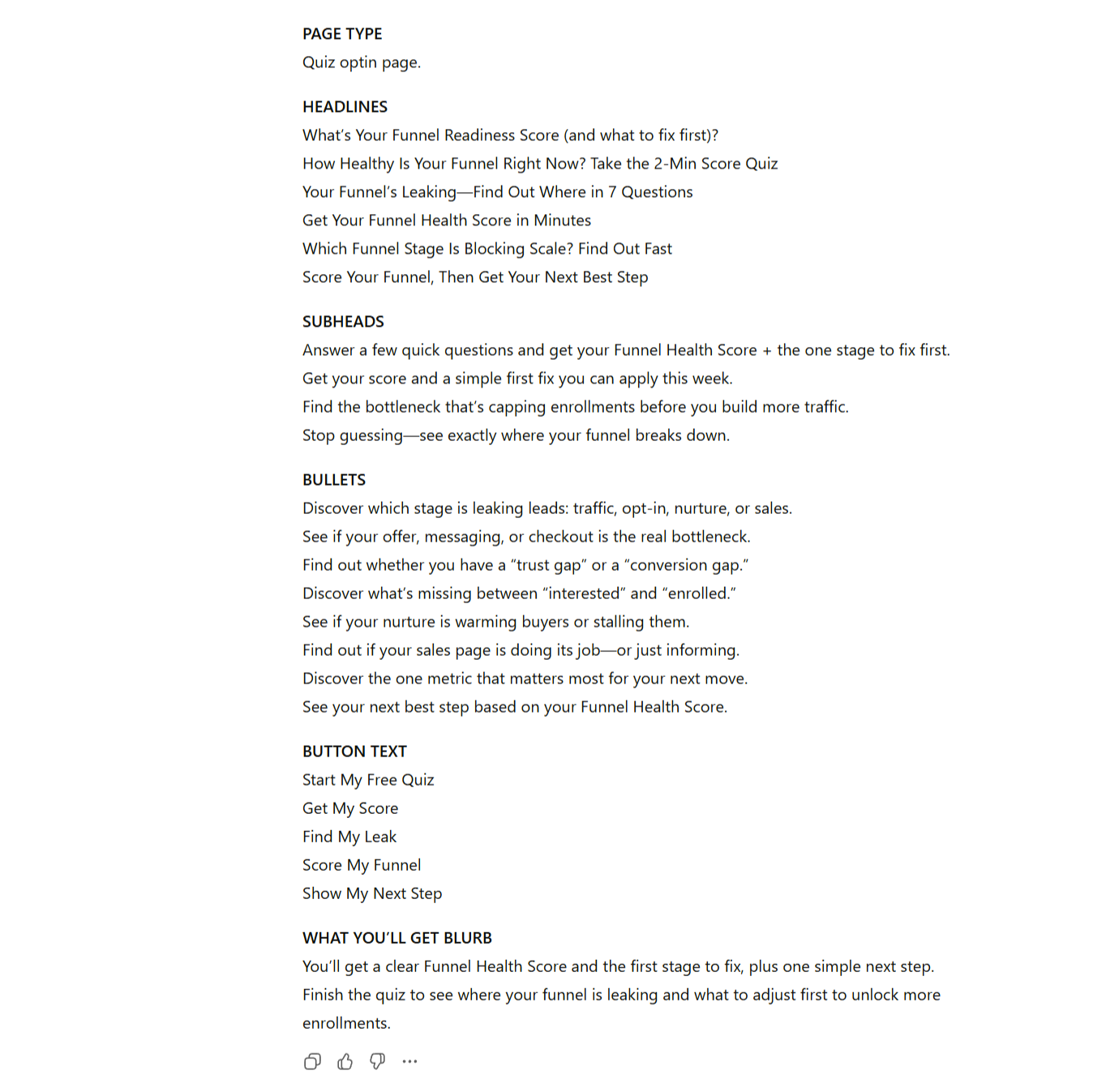 - The GPT spits out paste-ready optin copy in a proven structure.