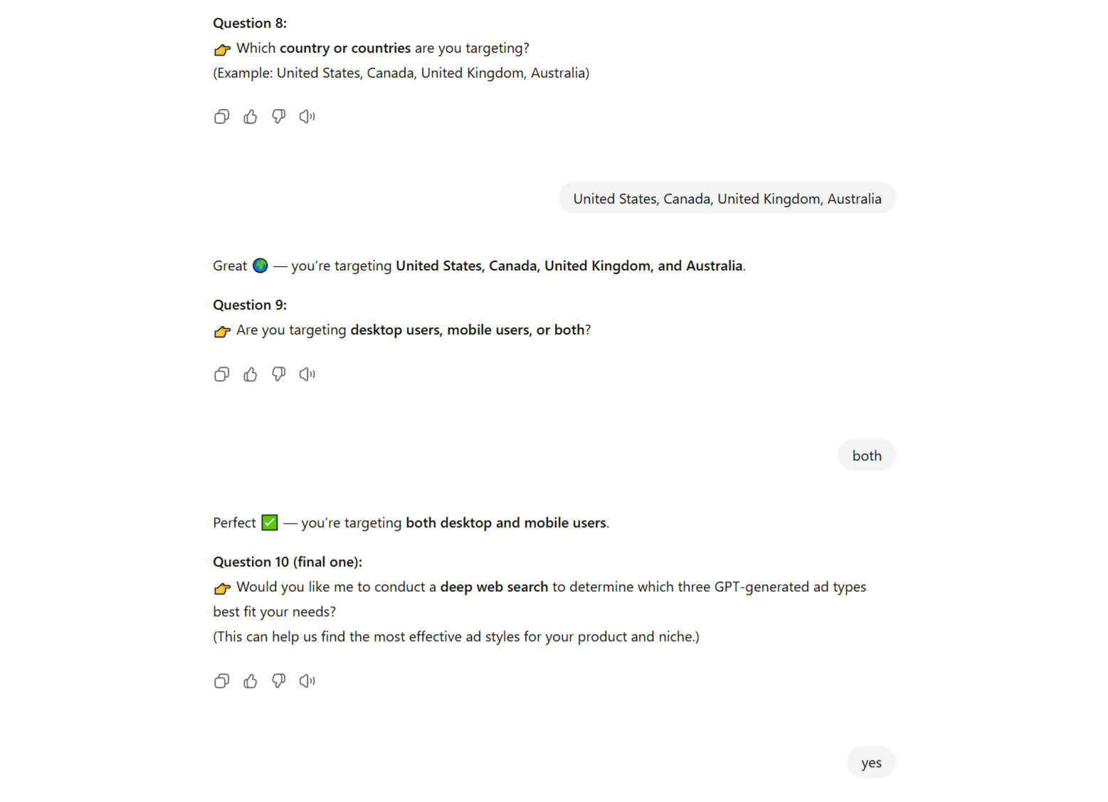 Step 2. AdSpark locks in your answers and uses them as the framework for every draft.