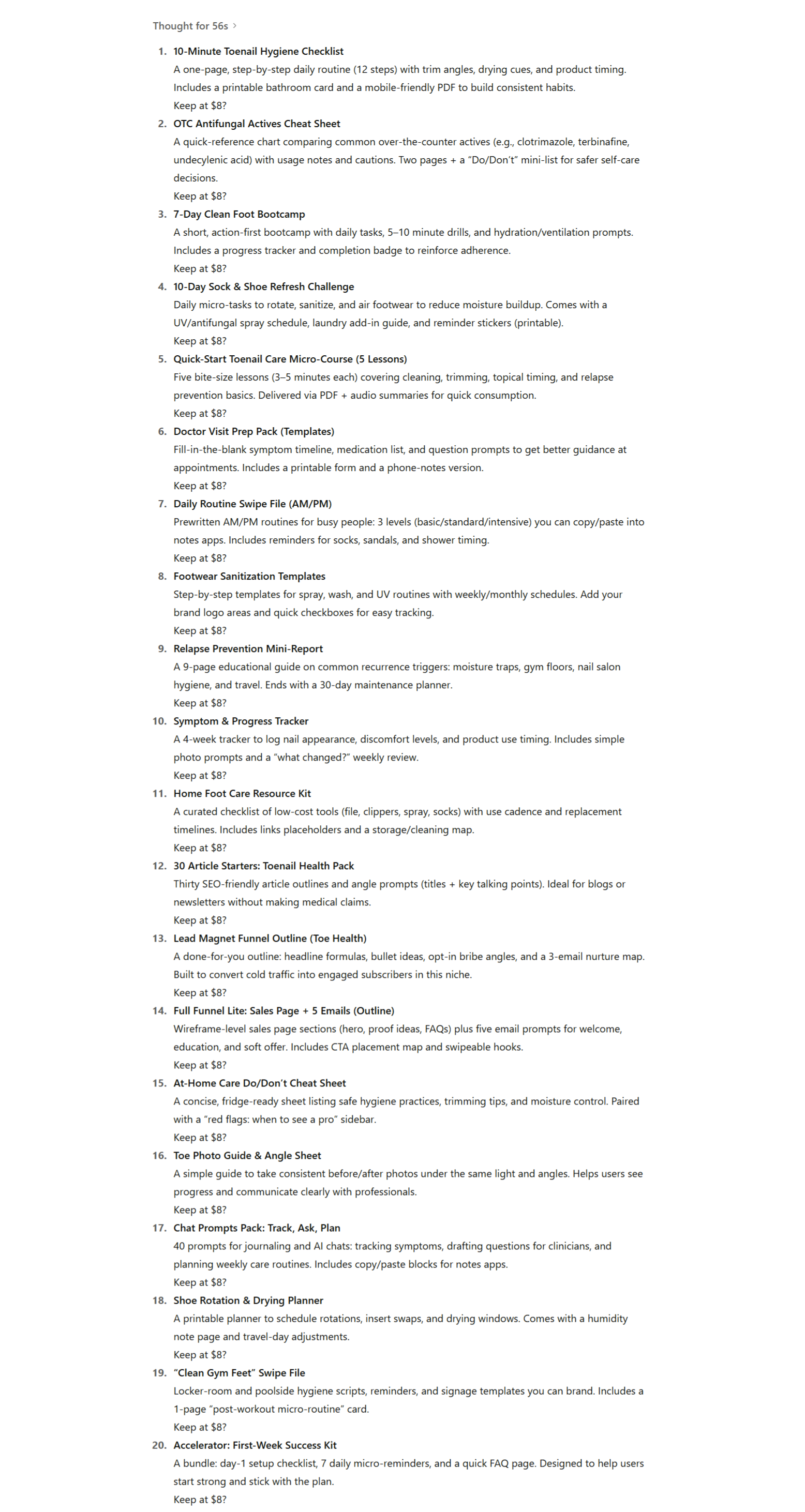 Change the niche, audience, or price. Get a fresh set of launch ideas at your fingertips.