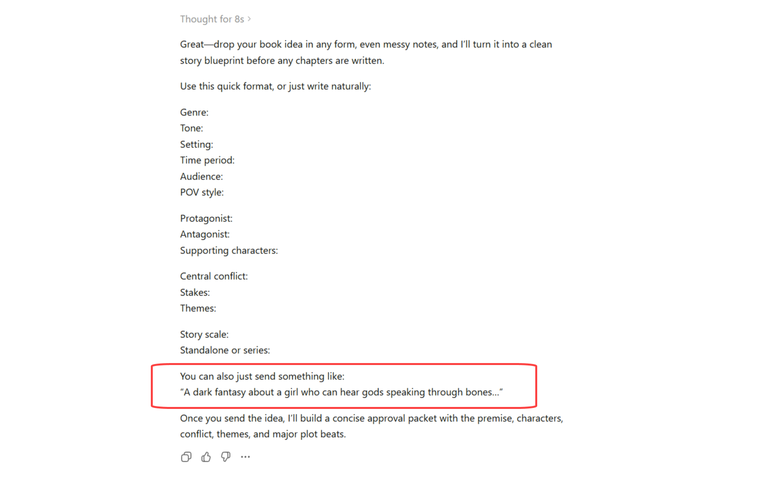 A helpful guide that shows users exactly how to answer the GPT’s questions so they can get stronger plots, better structure, better characters, and better story output from the start — Value: $27