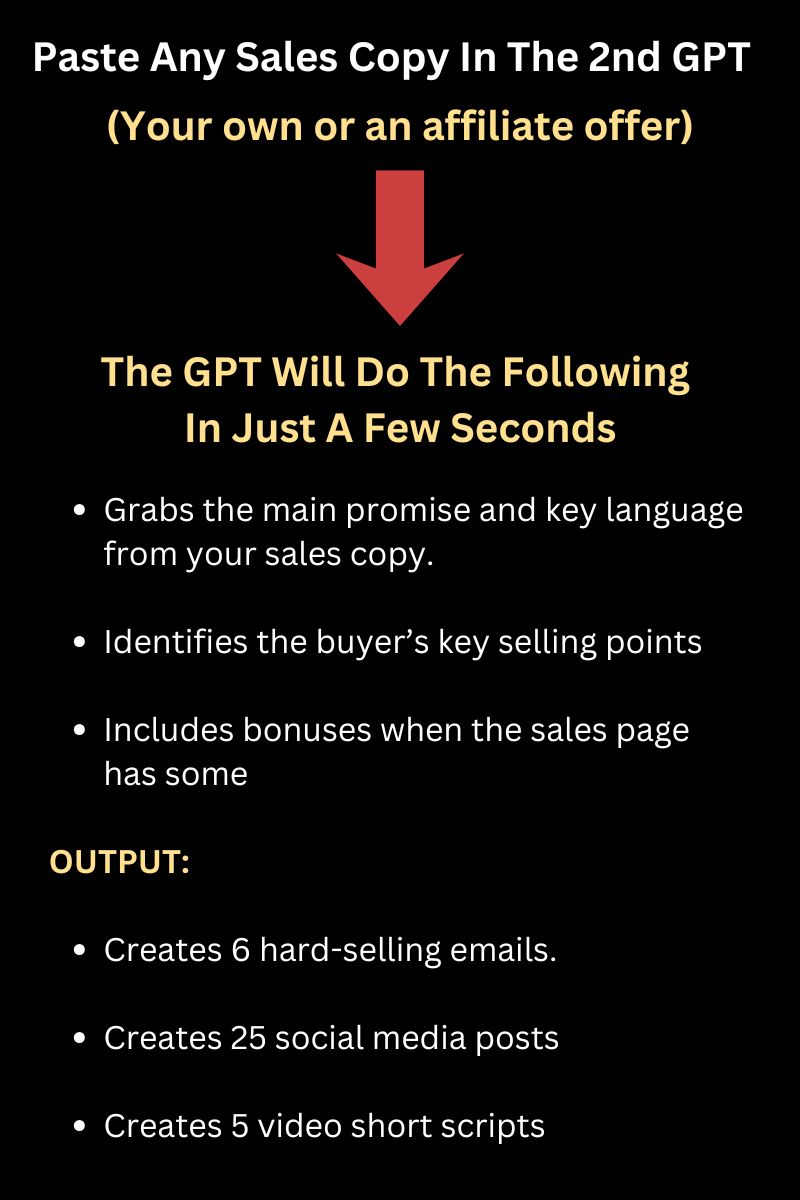 Step 1: You upload or paste the offer's sales copy in the GPT. No complicated setup — just drop it in and hit go.