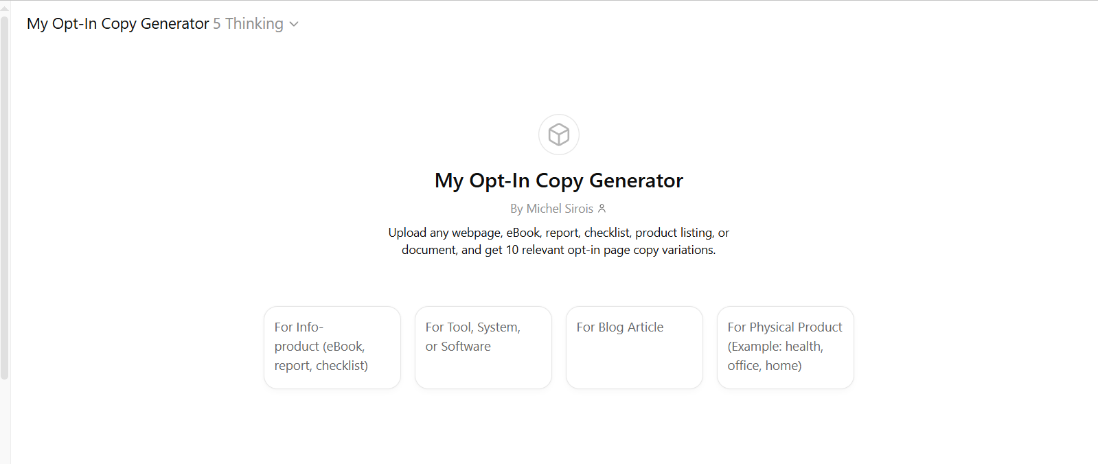 This GPT is trained to specialize in opt-in copy only, so outputs stay focused, structured, and consistent.