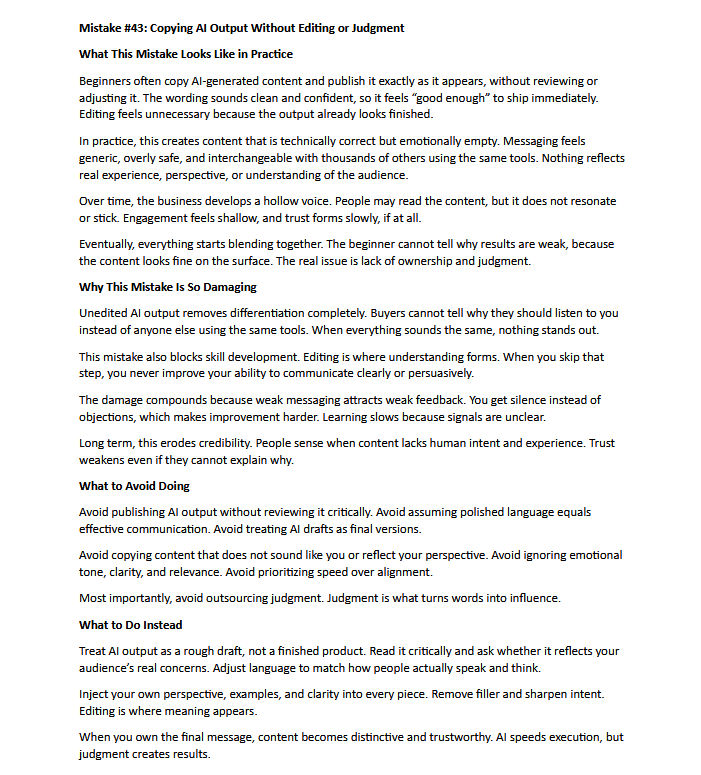 Break it into blog posts, emails, or video scripts. You’ve got 50 different mistake blocks of content you can repurpose any way you want.