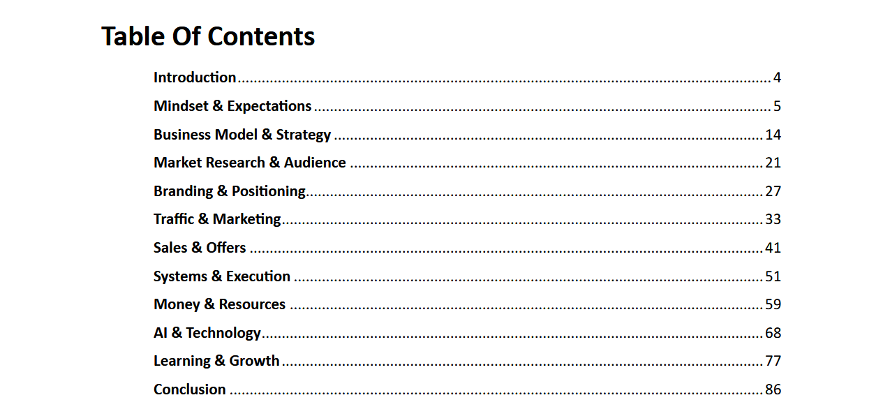 Branding and positioning sections expose why most beginners blend in, confuse their message, or overcomplicate identity. The content shows how clarity beats polish early, and why consistency builds trust faster than aesthetics ever will.